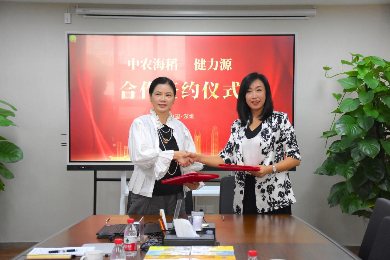 中農(nóng)海稻董事副總裁李莉(左)健力源南部大區(qū)副總經(jīng)理呂海紅(右)